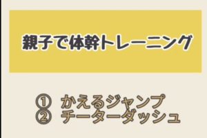 広く安全な場所で行ってください。 親子でコミュニケーションを取りながら楽しく行えると良いですね。 《動作ポイント》 ●手を床につく動作は、肩や肩甲骨まわりの筋肉